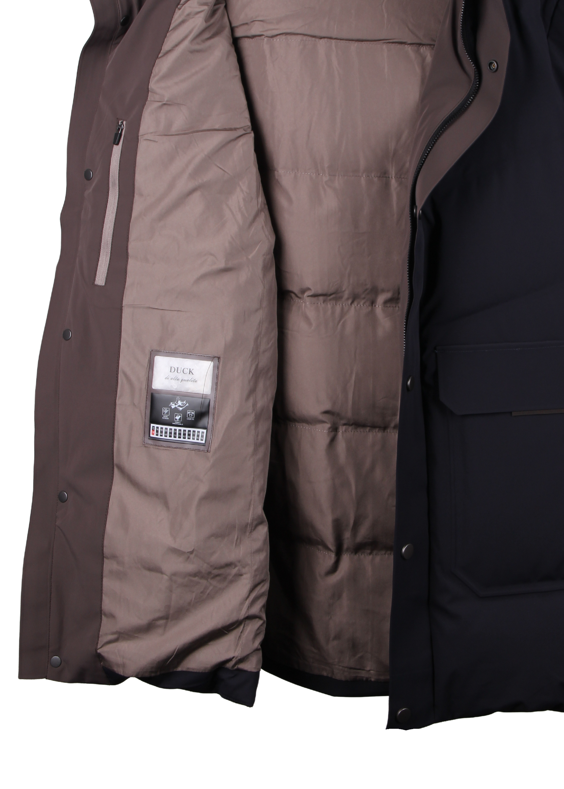 Klassik və funksional tərzi birləşdirən, soyuq havaya qarşı etibarlı qoruma təklif edən göy rəngli, kapüşonlu kişi gödəkçəsi. Yüksək keyfiyyətli materiallar və qu lələkdolğusu sayəsində həm istilik, həm də rahatlıq təmin edir. Şəhər və gündəlik geyim üçün ideal seçimdir.