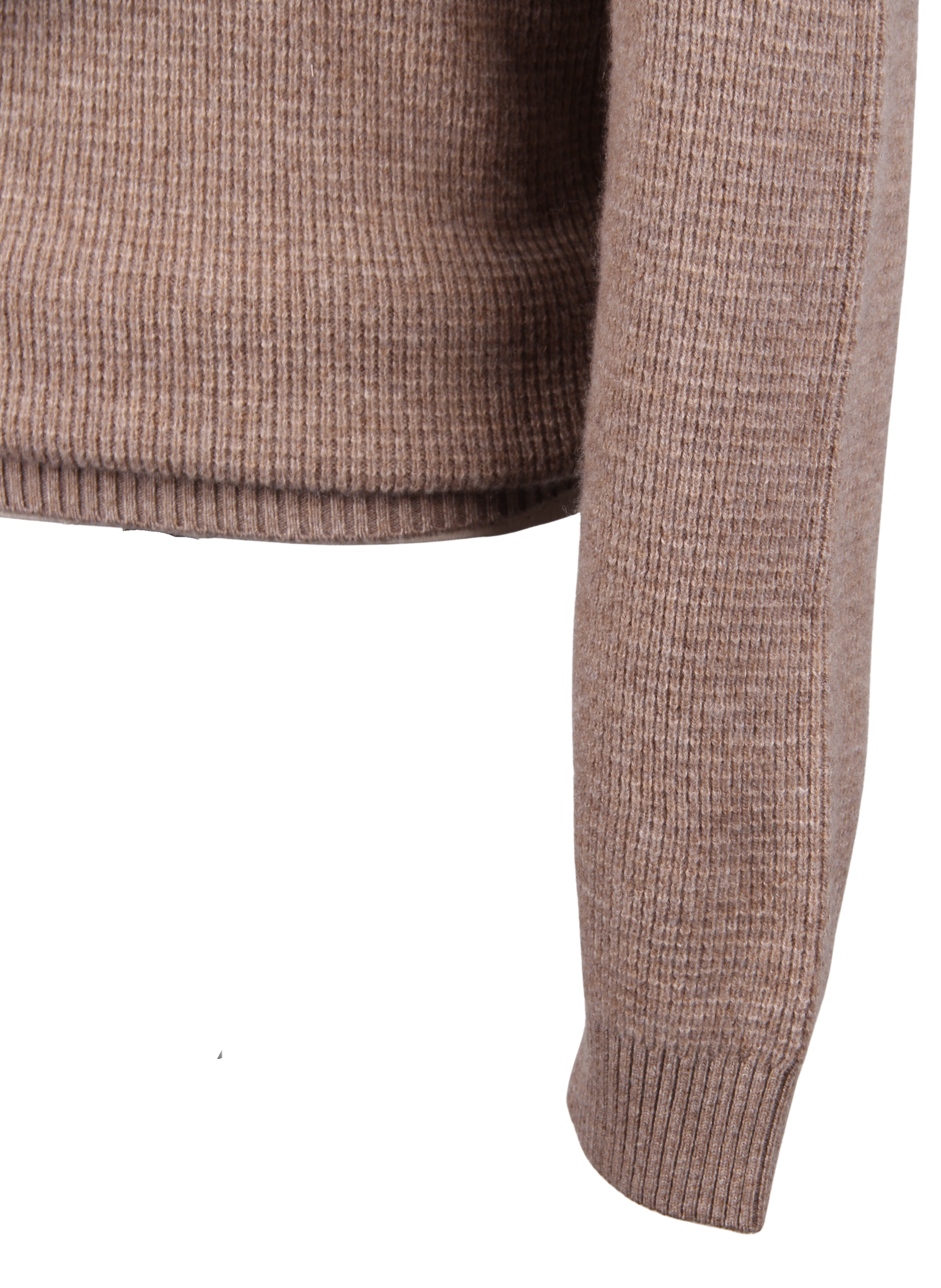 Этот стильный приталенный свитер бежево-серо-коричневого оттенка изготовлен из смеси 6,8% кашемира и 93,2% шерсти. Высокий вырез и вертикальная резинка создают классический и вневременной образ. Он сочетает в себе роскошную мягкость кашемира с качеством и теплотой шерсти.