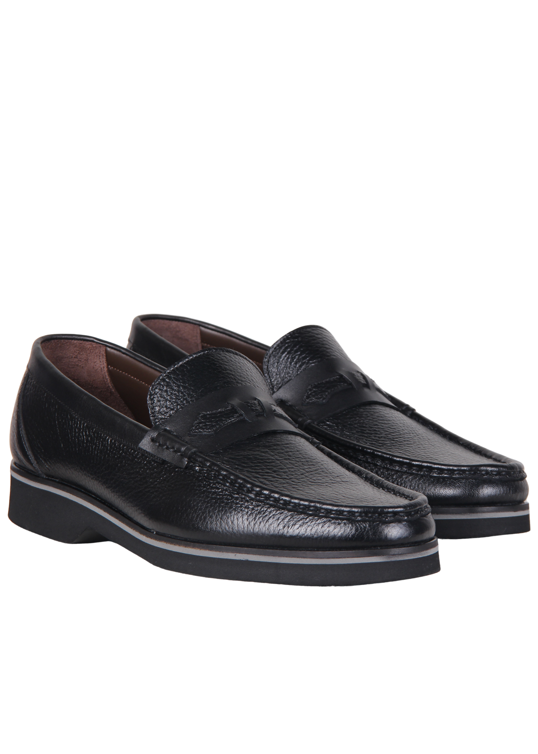 Черные пенни-лоферы от Scallezioni сочетают в себе непреходящее качество и современный стиль. Благодаря итальянской оленье коже и удобной лёгкой подошве из ЭВА с характерной полоской эта модель идеально подходит как для делового, так и для повседневного стиля.
