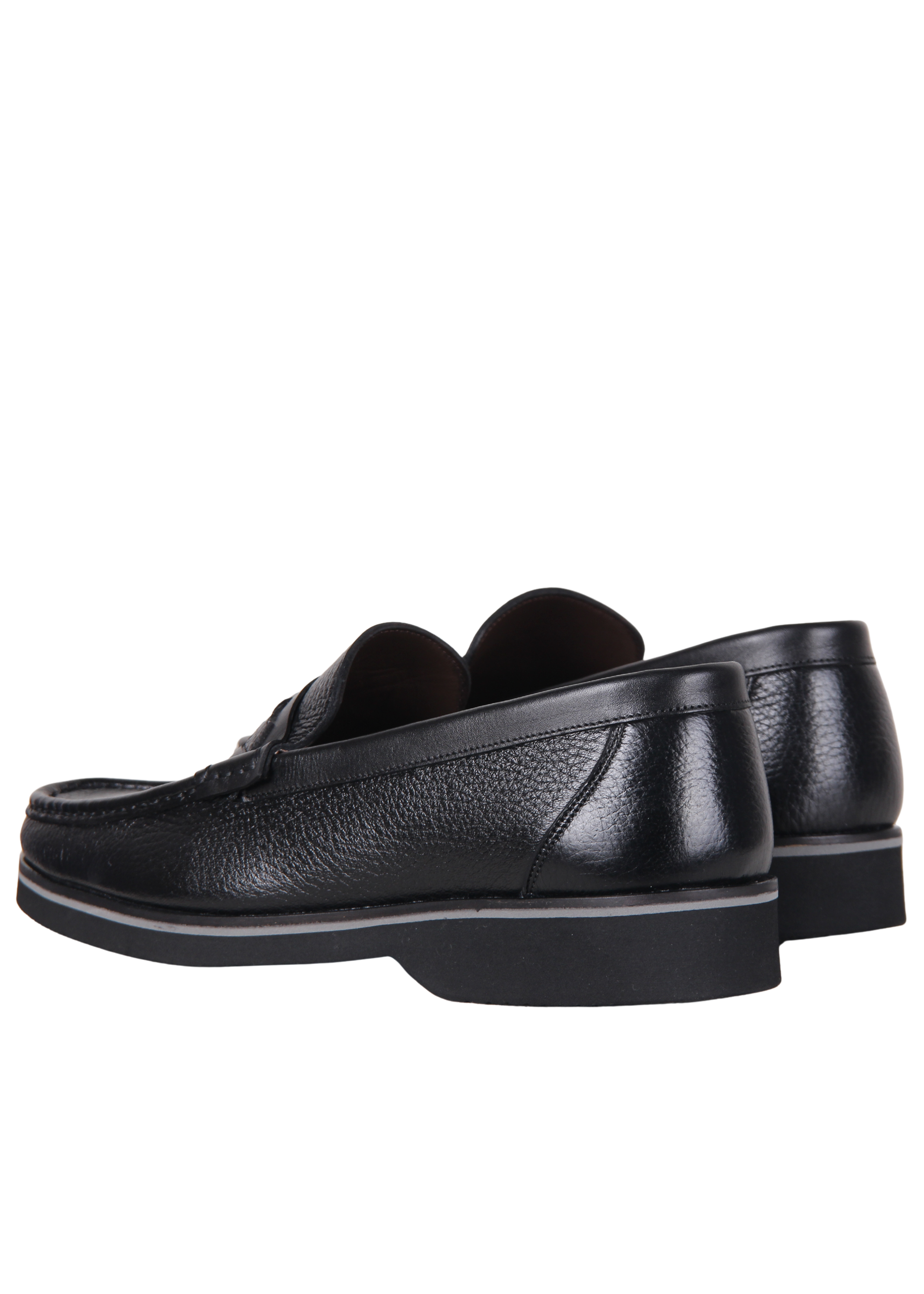 Эти элегантные мужские туфли представлены в классическом чёрном цвете и изготовлены из оленьей кожи (итальянского производства). Отличительной чертой является светло-серо-белая полоска по бокам чёрной подошвы из ЭВА, которая добавляет классическому силуэту нотку современности. Подкладка из натуральной кожи обеспечивает воздухопроницаемость и максимальный комфорт.
