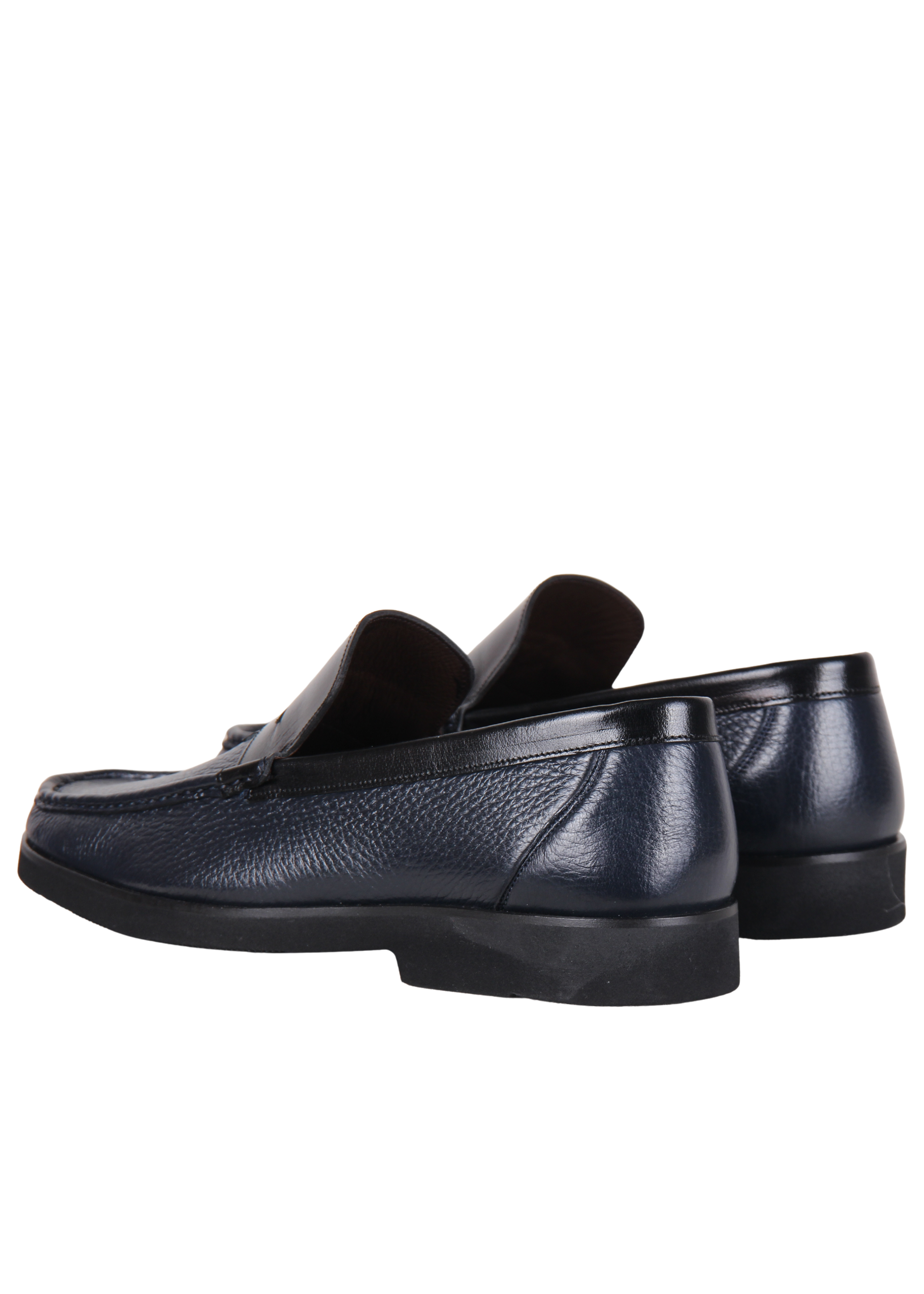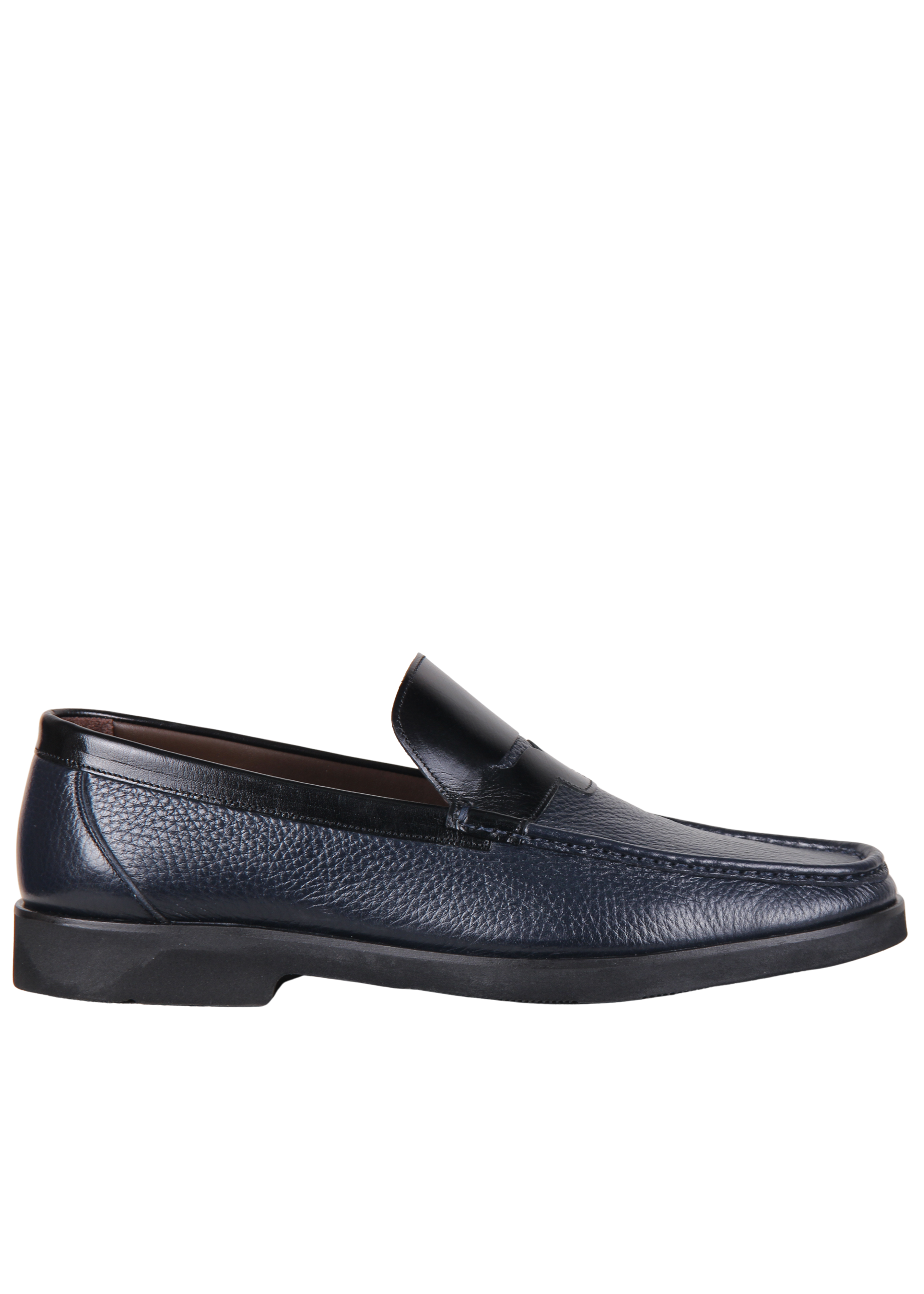 Эти элегантные мужские лоферы насыщенного тёмно-синего цвета. Верхняя часть изготовлена из мягкой зернистой оленьей кожи (итальянского производства), что придаёт ей богатую и роскошную текстуру. Классический крой пенни-лоферов дополнен чёрной блестящей лакированной деталью на мыске. Подошва – прочная, простая, толстая, из ЭВА чёрного цвета, обеспечивающая комфорт и лёгкость.