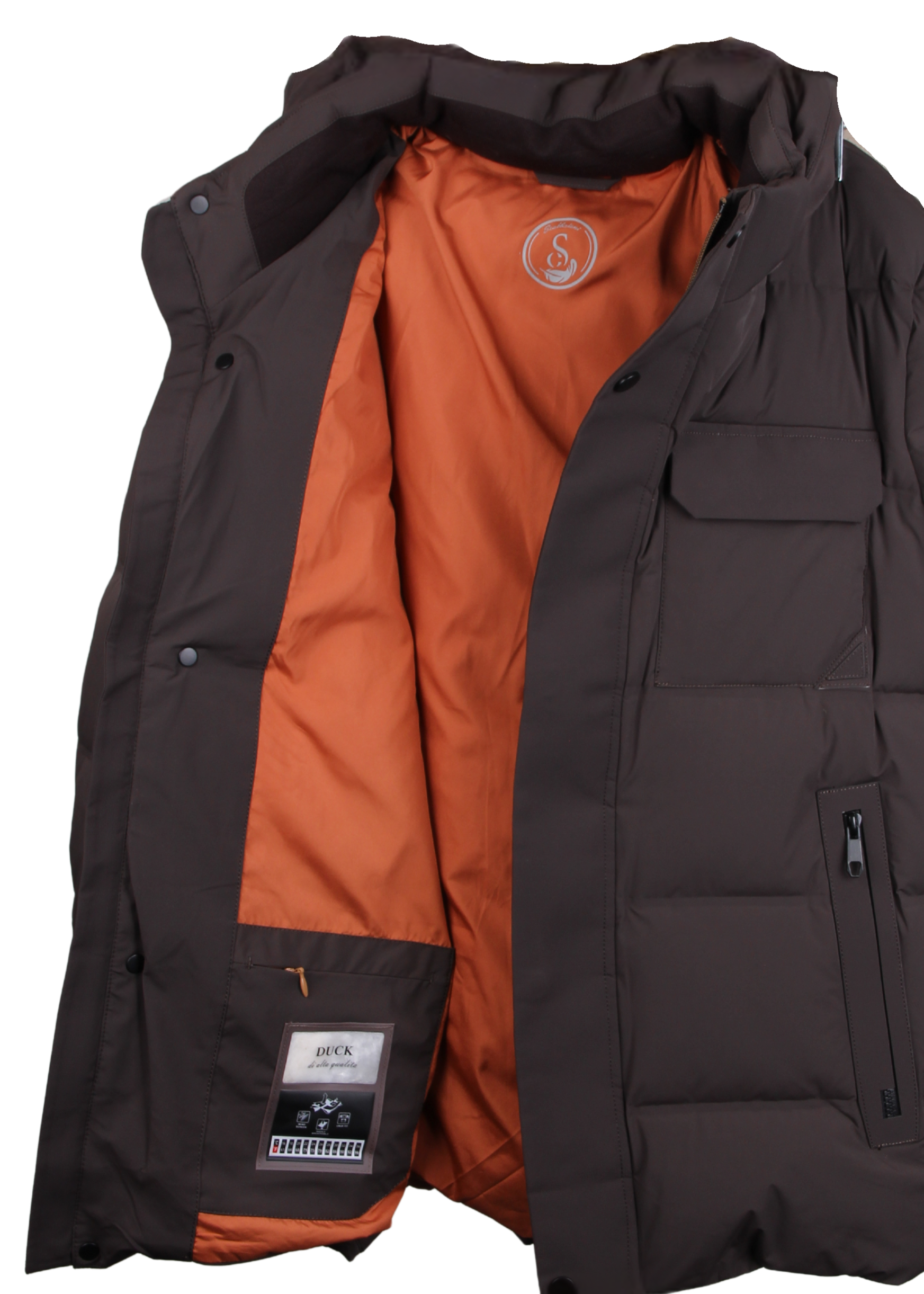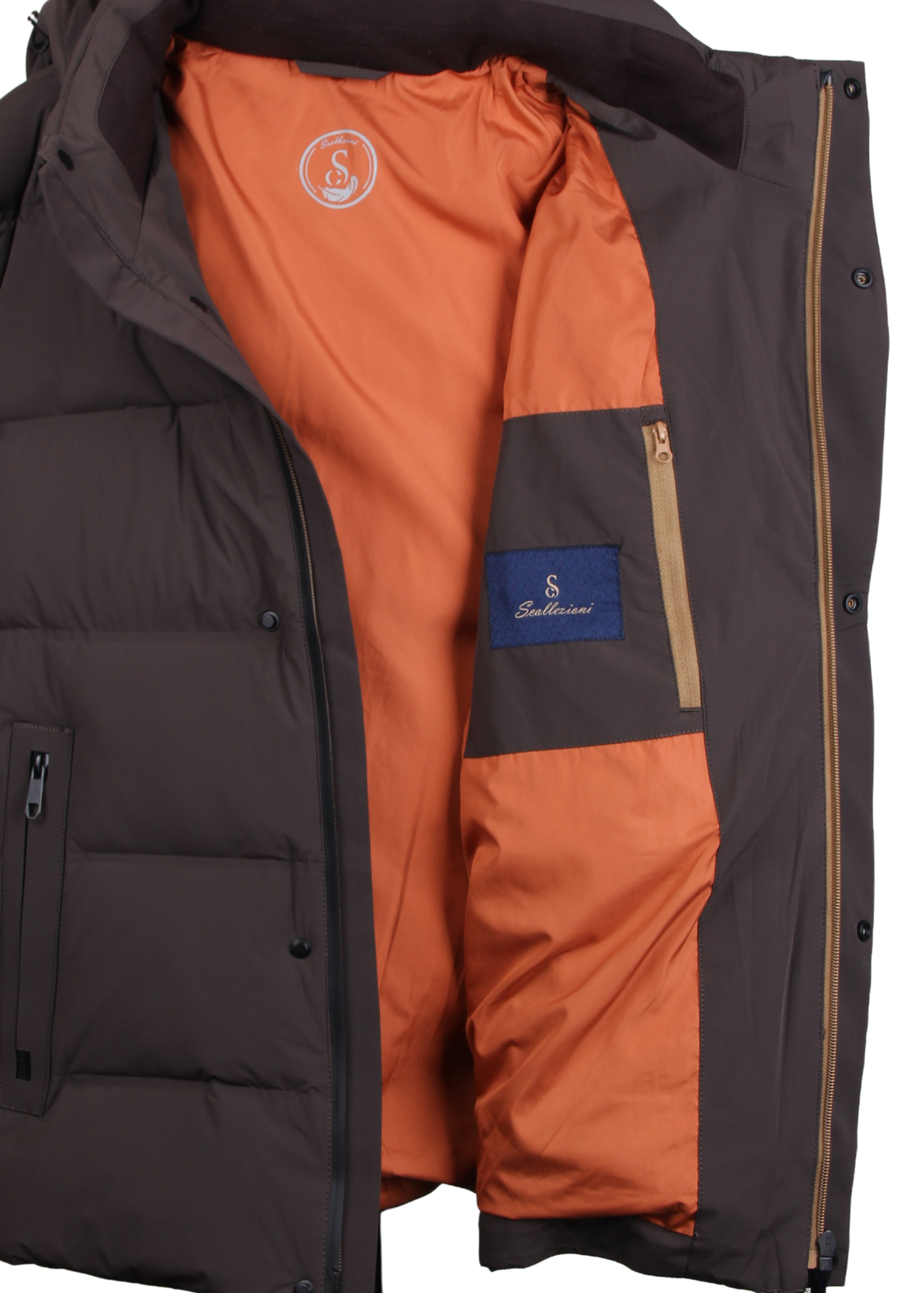 Встречайте нового фаворита коллекции Scallezioni осень-зима 2025-2026! Эта модель, сочетающая в себе городской стиль и функциональность, согреет вас в холодную погоду и дополнит ваш элегантный образ. Эта куртка, которая благодаря темно-коричневому цвету легко сочетается с любым нарядом, отличается современным кроем и минималистичным дизайном. Яркая оранжевая подкладка добавляет динамичности и оригинальности дизайну. Изготовленная из высококачественных материалов, эта куртка станет незаменимой частью вашего гардероба в зимние месяцы.